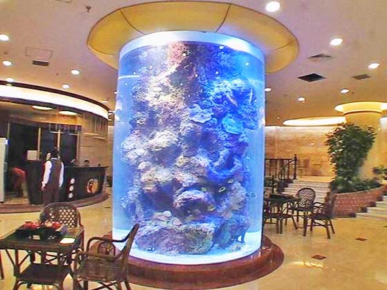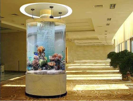 上海日晟水族工程,定做圓柱形魚缸,觀訂做賞性魚缸